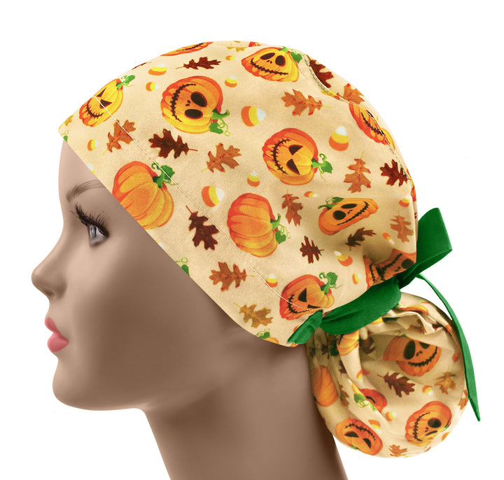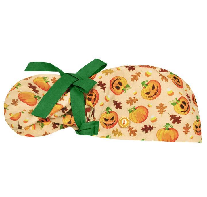 Halloween Ponytail Scrub Cap For Women, Fall Themed Surgical Scrub Hat