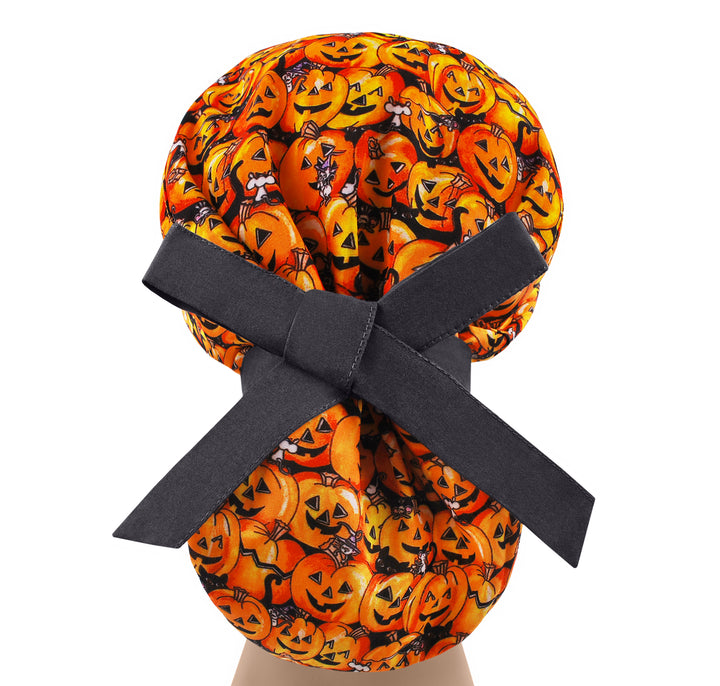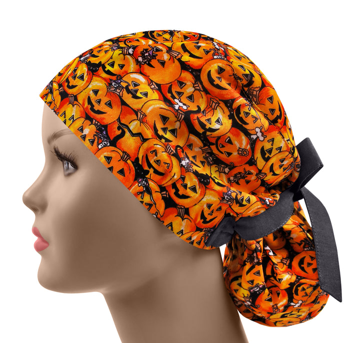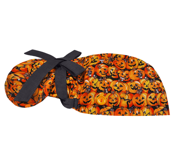 Halloween Ponytail Scrub Cap For Women, Pumpkin Jack Surgical Scrub Hat