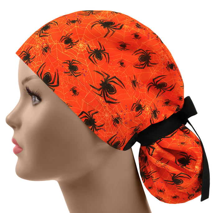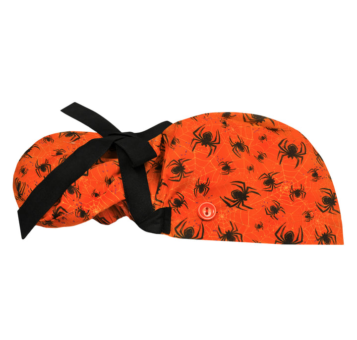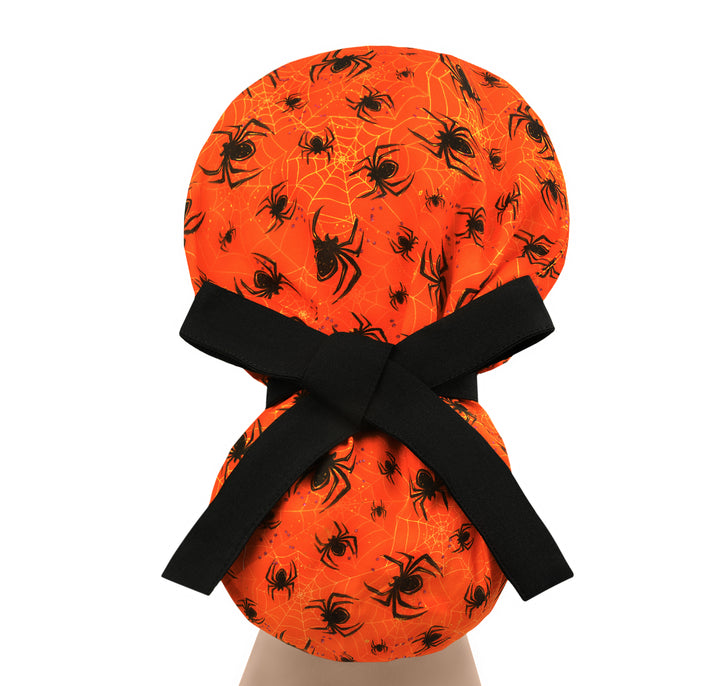 Halloween Ponytail Scrub Cap For Women, Spider Surgical Scrub Hat