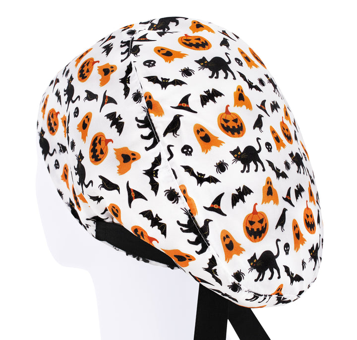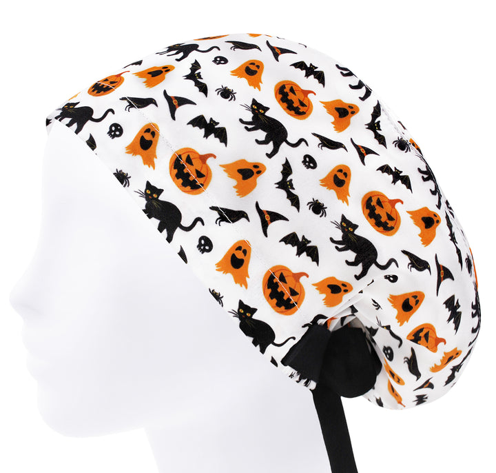 Halloween Scrub Cap for Women, Surgical Scrub Hat Pumpkin Bat