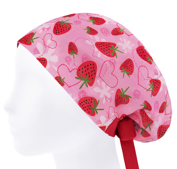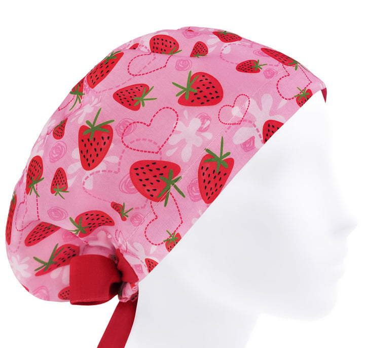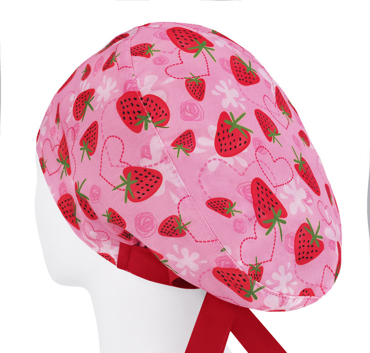 Scrub cap strawberry for women, fruit scrub hat, pink surgical cap