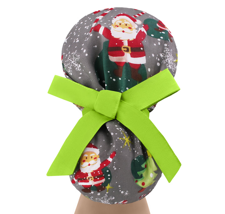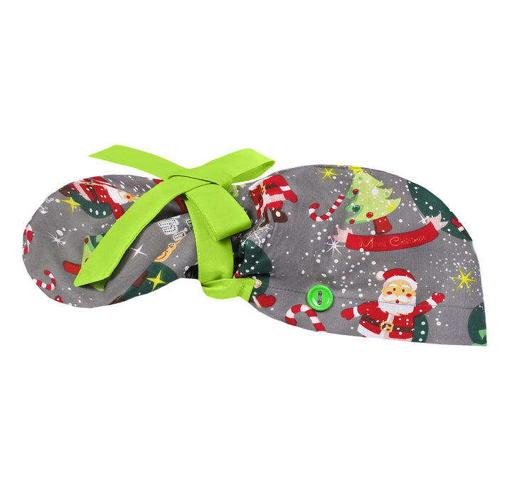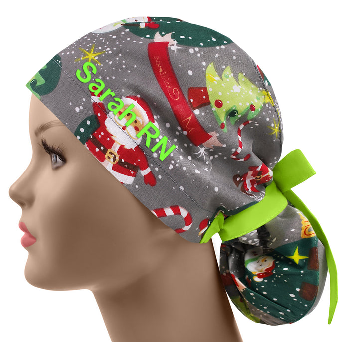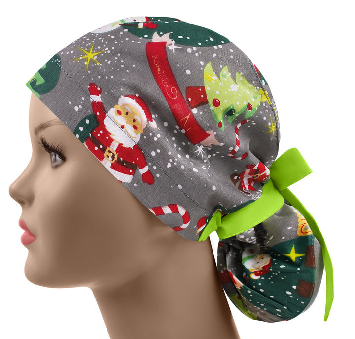 Winter Scrub Cap for Women, Santa Ponytail Surgical Hat Holiday