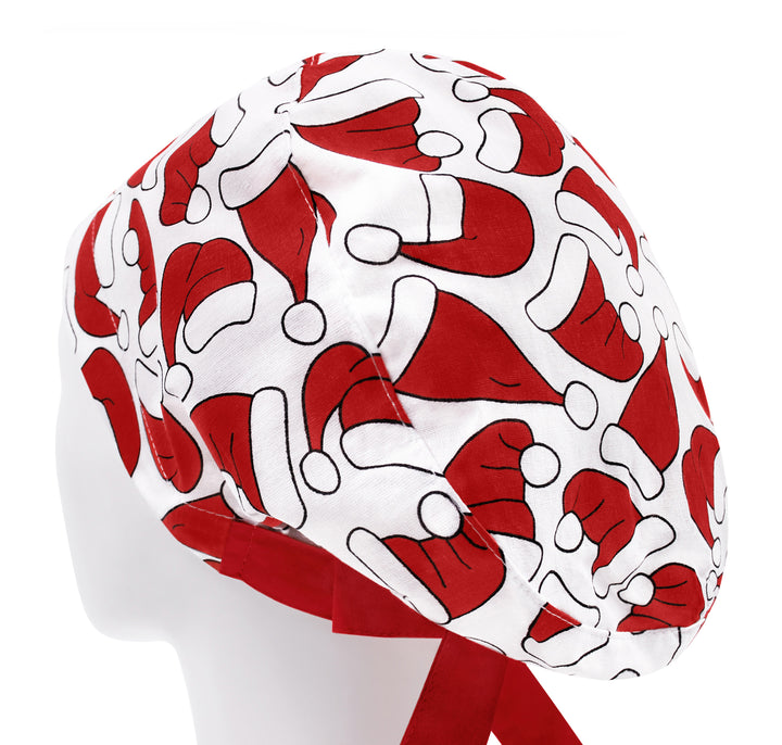 Women Scrub Cap Christmas, Cotton Surgical Hat Holiday Santa