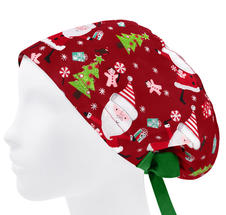 Women Scrub Cap Christmas, Holiday Cotton Surgical Hat Santa