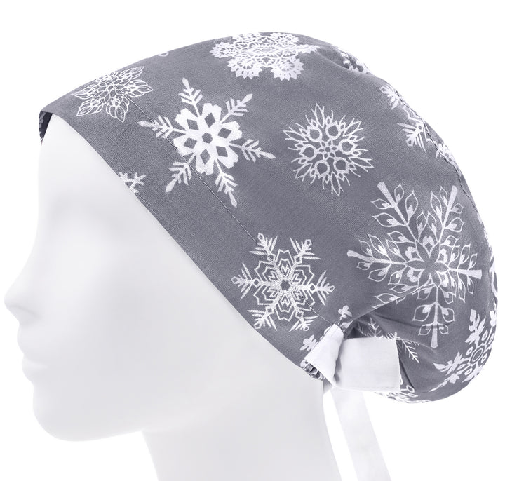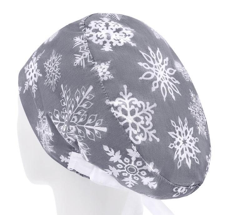 Women Scrub Cap Christmas, Snowflakes Cotton Surgical Hat Holiday