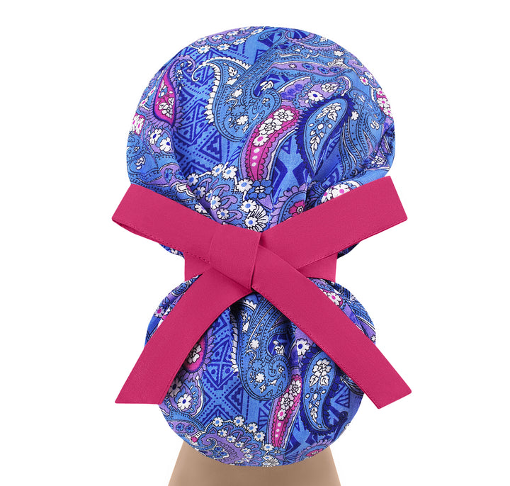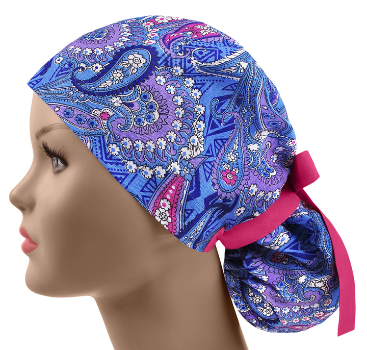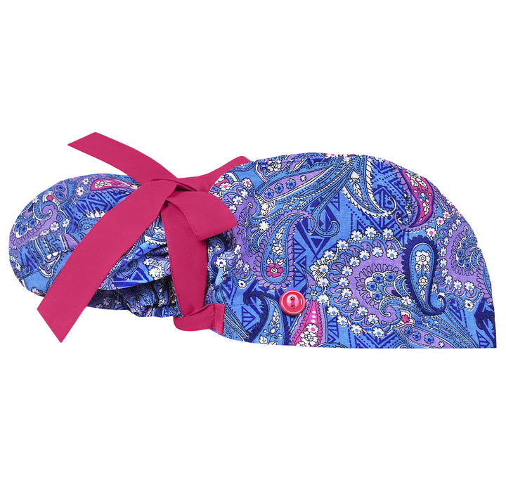 Womens Ponytail Scrub Cap Paisley, Cute Scrub Hat, Surgical Cap